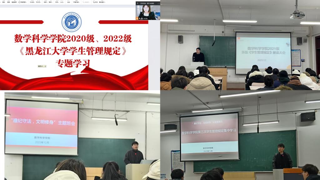 12月7日-12月15日,张卓豪、徐远航、边洪毅分别带领各级学生集中学习《永利官网学生管理规定》,就我校学生管理规定、学生纪律处分办法、学生申诉处理办法、综合素质评价实施办法、学业预警管理办法、公寓管理办法等内容进行详细解读,结合实际案例,着重强调不得在网上发表不当言论、不得夜不归宿、不得偷盗他人物品,尤其是关于考试违纪等问题及产生的后果,本次系列学习活动使同学们对学校的各项规章制度有了明确的认识,促进了学生的自我管理、自我服务、自我教育和自我监督。