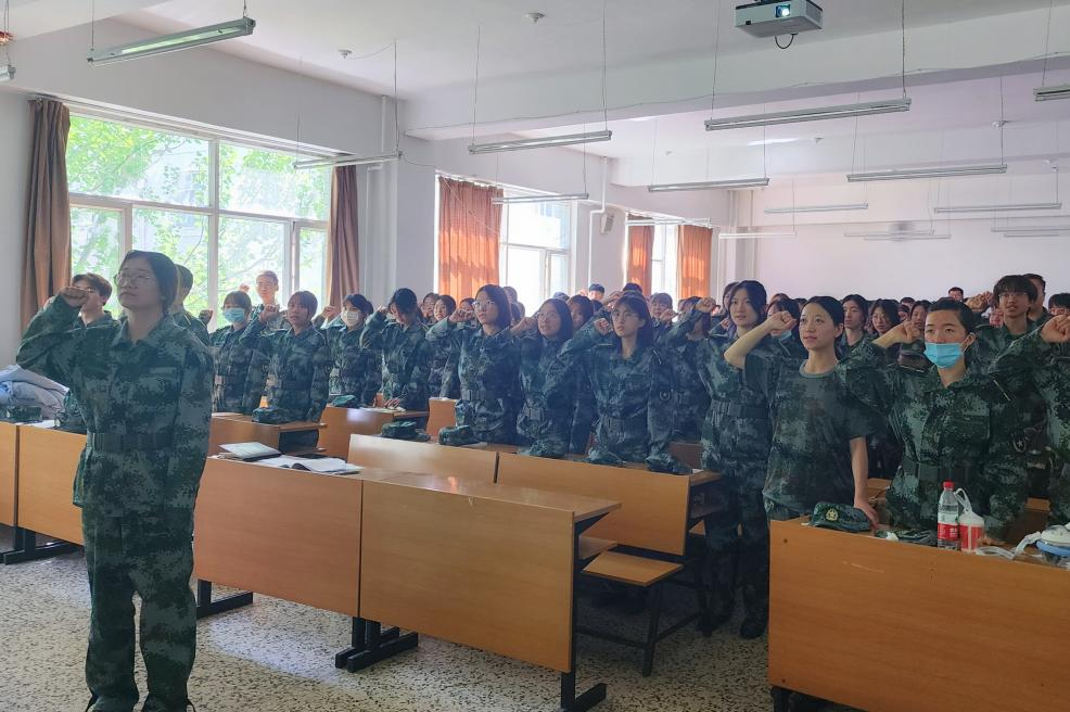 会议最后一项,由22级统计学专业学生鹿玮麟带领全体同学宣誓。同学们挺起胸膛,高举右拳,站姿端正,庄严宣誓,端正态度,服从命令,听从指挥,严格自律,充满信心的声音响彻教室的每一个角落。
