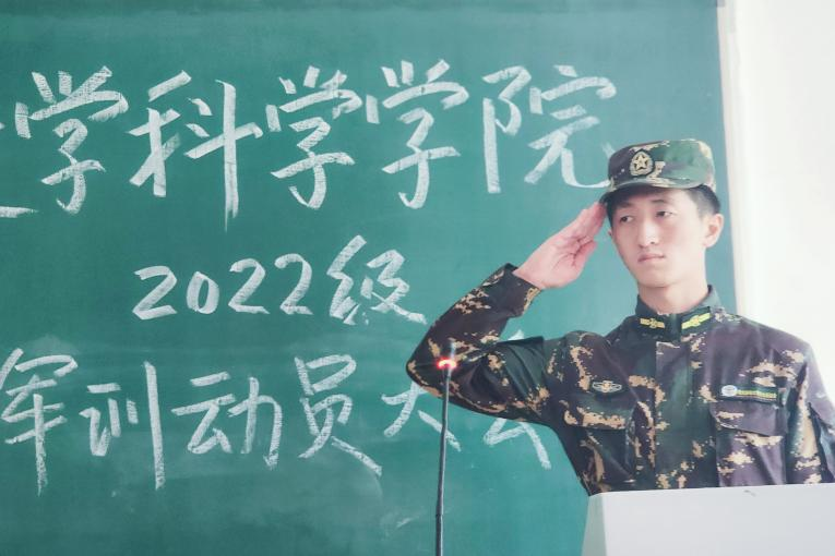 学生代表2022级数学与应用数学专业张庭荧上台发言。他表示,通过军训我们不仅可以强健体魄,练就坚强意志,更能够懂得军人对于国家的意义,学会中国军人的执着、担当、责任与血性,磨炼毅力。军训的号角已经吹响,少年乘风正当时,他代表全体参训学生做出承诺,定会以饱满的激情和积极的态度投入到军训之中,用汗水谱写人生的精彩华章!