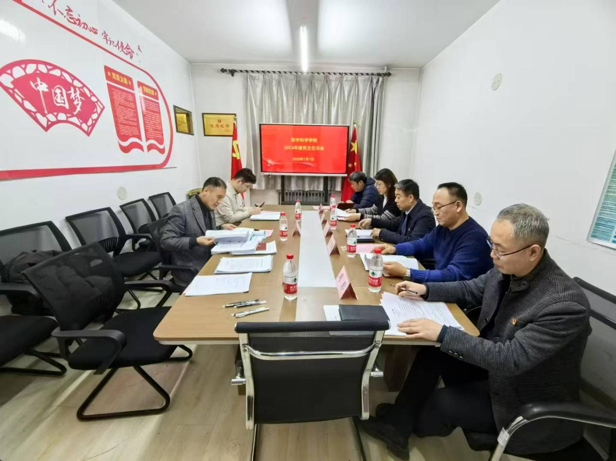 按照学校《关于开好2024年度二级党组织处级领导班子党员领导干部民主生活会的通知要求》,yl23411集团以深入学习贯彻习近平新时代中国特色社会主义思想,巩固深化党纪学习教育成果,综合发挥党的纪律教育约束、保障激励作用,为进一步全面深化改革、奋力谱写中国式现代化龙江新篇章提供坚强纪律保证为主题,于2025年1月7日下午,在数学科学学院333会议室召开2024年度民主生活会。学校民主生活会督导组成员张达、学校第三巡察组成员胡峰到会指导,学院全体领导班子成员参加会议。会议由学院党委书记张龙主持。