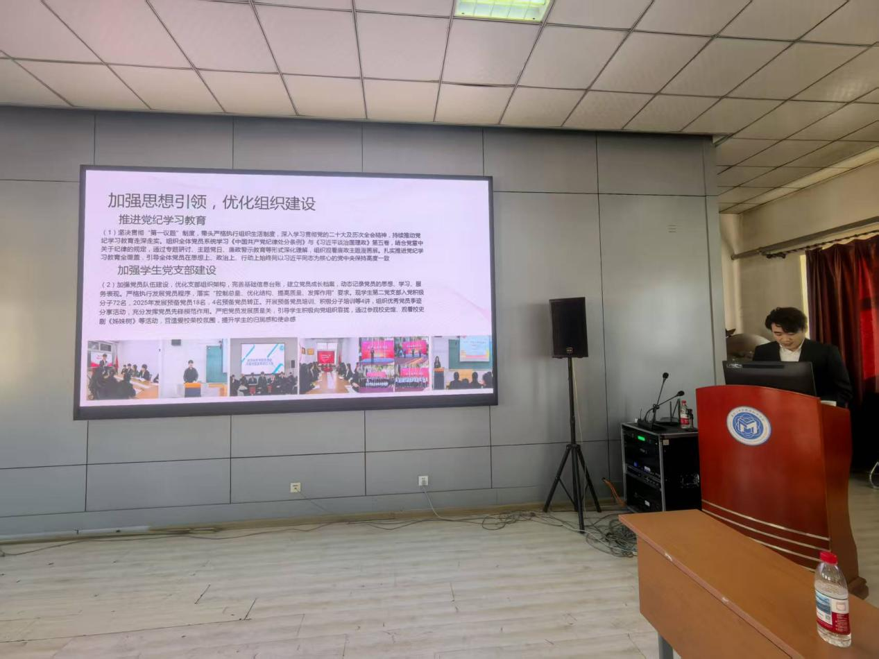 学院教工第三党支部书记于婷婷、学生第二党支部书记边洪毅、研究生第一党支部书记华可欣等3位同志围绕2025年履行抓基层党建职责情况进行现场述职,学院教工第二党支部书记单莹莹、学生第三党支部书记徐远航、研究生第二党支部书记高歌、研究生第三党支部书记宋晓钰等4位同志以现场报告形式述职,其他4名党支部书记以书面报告形式述职。