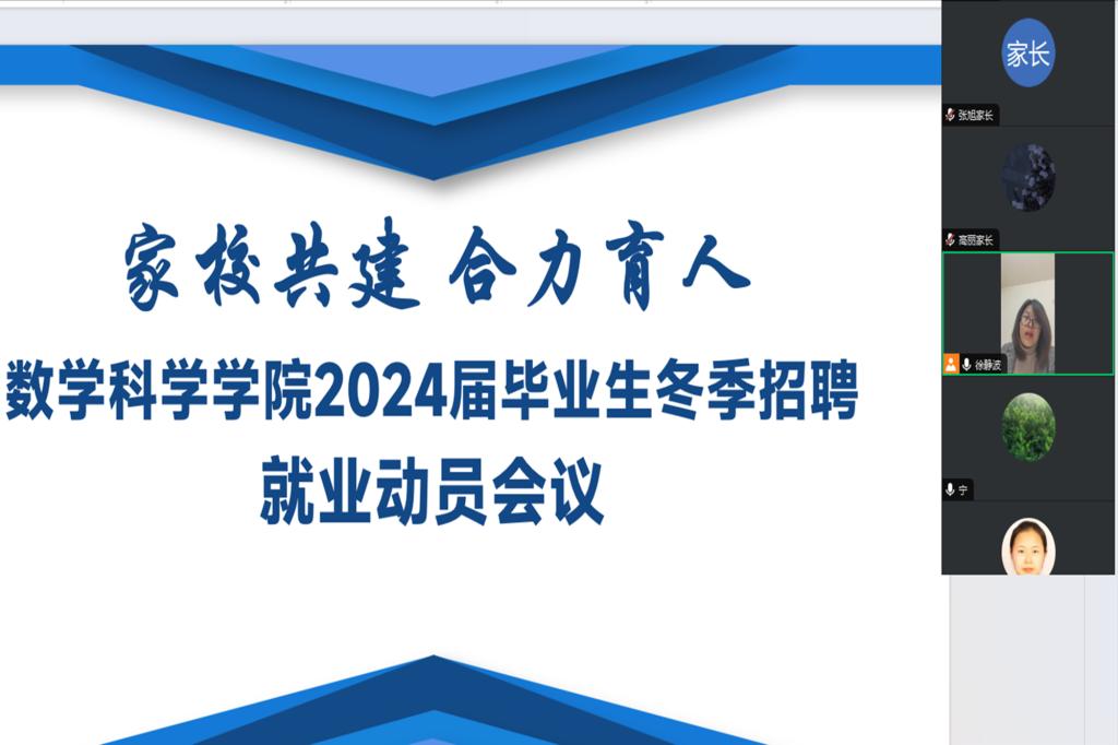 2023年12月21日,学院党委副书记徐静波、辅导员徐远航组织开展“家校共建 合力育人—yl23411集团2024届毕业生冬季招聘就业动员家长会”。会上,徐静波书记为各位家长介绍了目前学院就业的整体情况,分析了2024届学生的就业优势,强调了目前就业形势的严峻性和冬季招聘会的重要性,动员各位家长客观做好学生的就业规划,与子女一同做足就业准备,找准目标定位,制定可行计划,把握此次冬季双选会的黄金机遇。徐远航为家长介绍了招聘会的具体情况和参会单位需求信息,就期末考试、毕业论文撰写、学分审核和在校生管理的相关规定进行解读,叮嘱家长在考试节点做好学生心理关注和疏导工作,为学生树立考试信心和就业信心。