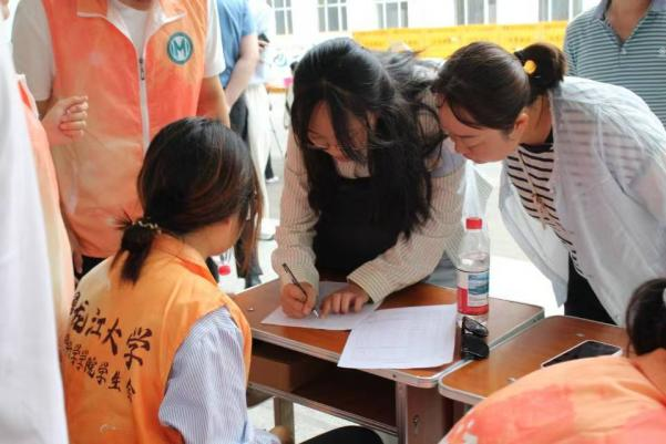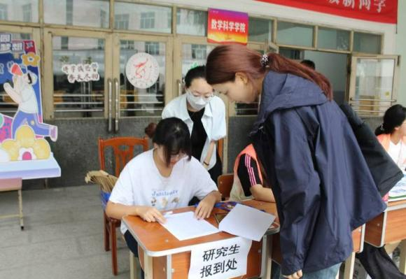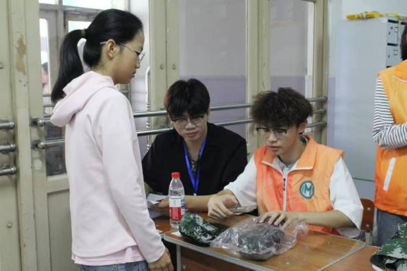 在迎新物资发放点,志愿者们以专业、细致的服务确保每位新生快速、准确地领取材料袋与军训服装。同学们分工明确,流程清晰:从身份核验、材料分类,到服装尺码核对、试穿更换,每个环节均有专人耐心引导、及时协助。整个流程顺畅高效,现场秩序井然,志愿者们用热情与严谨展现出数学人的条理与担当,让新生在入校首日便感受到学院的温暖与专业。