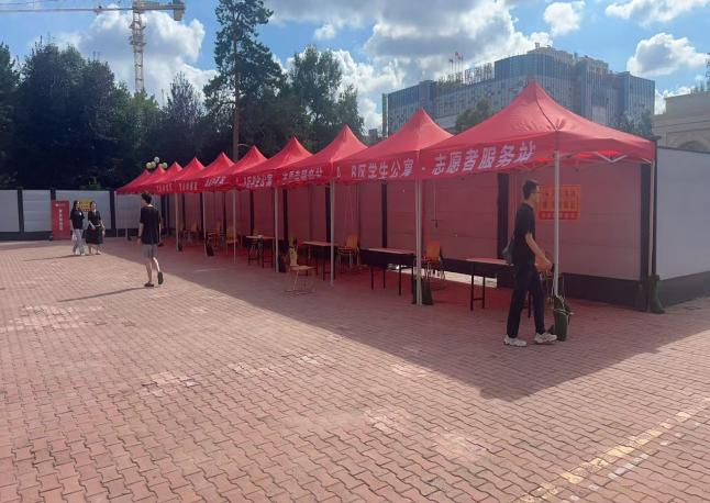 在迎新前夕,为确保各接待点在风雨天气中依然稳固可靠,徐远航和边洪毅老师亲自带领志愿者,在学校A区、B区和C区的帐篷布置点开展沙袋加固工作。老师们与同学们并肩协作,搬运沙袋、压实帐脚、调整位置,每一个环节都严谨细致。志愿者们分工有序,默契配合,不仅快速完成了多个区域的沙袋布设,更对每个帐篷的稳定性和安全性进行了逐一检查。他们用实际行动诠释了责任与担当,展现出严谨务实、团结协作的精神风貌,为迎新工作的顺利开展提供了坚实保障。