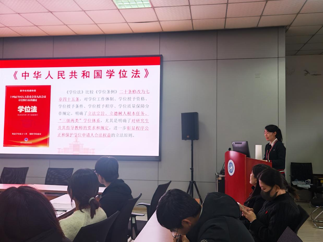 宋相梅深入解读了《中华人民共和国学位法》,重点阐释了学位授予程序、质量保障机制、学位异议与申诉等关键环节,并结合yl23411集团研究生学位成果要求的实施细则,使师生对申请学位的流程与标准有了更明确,完整的认识,为研究生学术成长提供了清晰指引,也为进一步提升学位管理工作的规范性与科学性作出指导,同时对《永利官网研究生申请学位成果基本要求(修订稿)》进行解读。