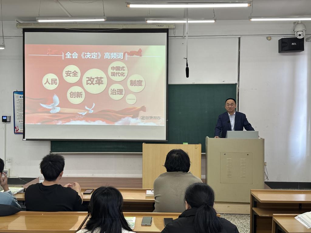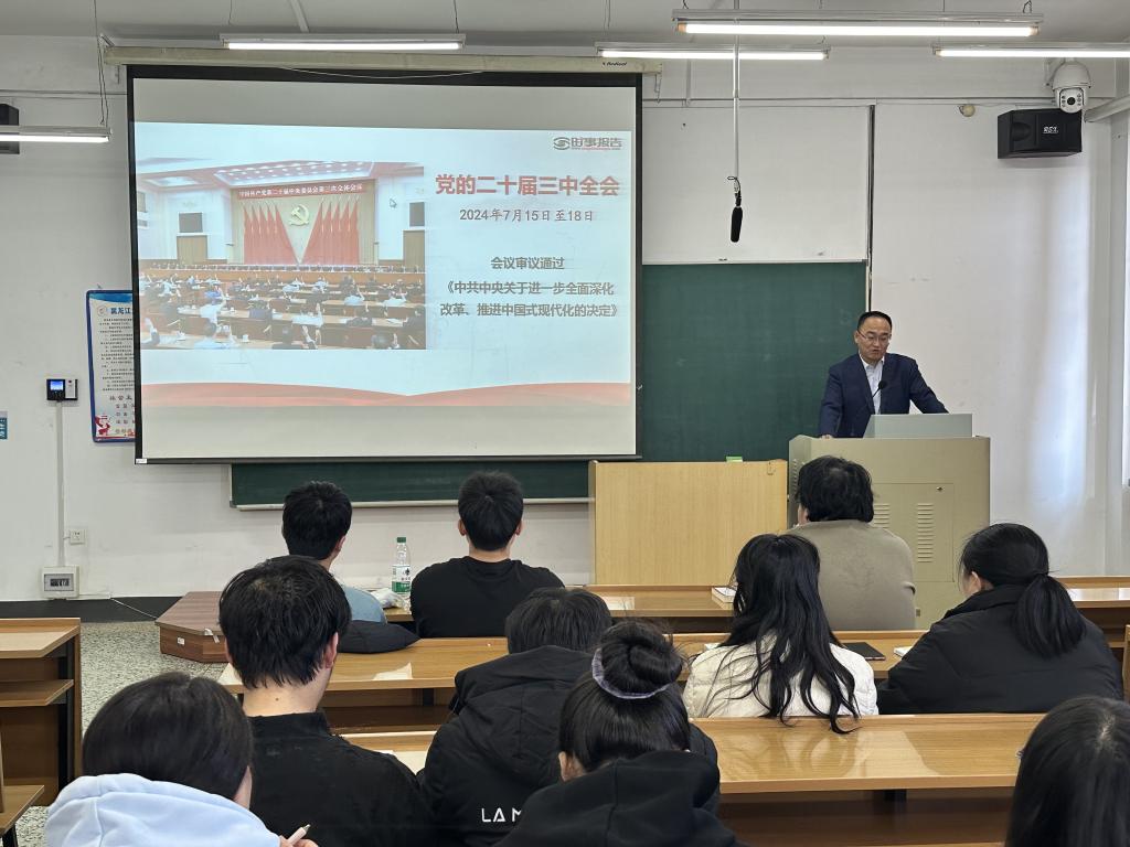 课堂上,张龙书记和唐孝敏院长全方位解读了党的二十届三中全会精神的要义和实质,同时结合个人经历,用发生在身边的典型案例,讲述国家的巨大变化,不断启发同学们深入思考作为勇担民族复兴大任的时代新人,应如何结合所学专业,实现自身发展与改革的同频共振,让同学们在知识的海洋中、思想的碰撞中、情感的体验中收获颇丰。同学们纷纷表示,这是一次时间跨度大、涉及领域广的精彩思政课,使同学们对进一步全面深化改革有了更深入的理解,也更加坚定了他们为实现中华民族伟大复兴而刻苦学习的决心。