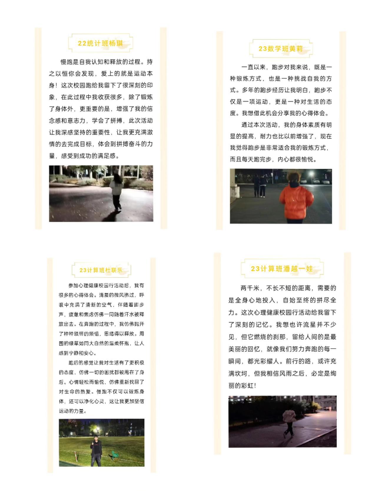 本次活动提高了同学们的意志力,增强了同学们的自信心,同时也体现出了青春的激情与色彩。努力拼搏是最美姿态,超越自我是最佳状态,希望在未来我们可以乘坐载满青春的航船,乘风破浪,让我们一起不负青春,带着热爱与激情继续勇往直前!