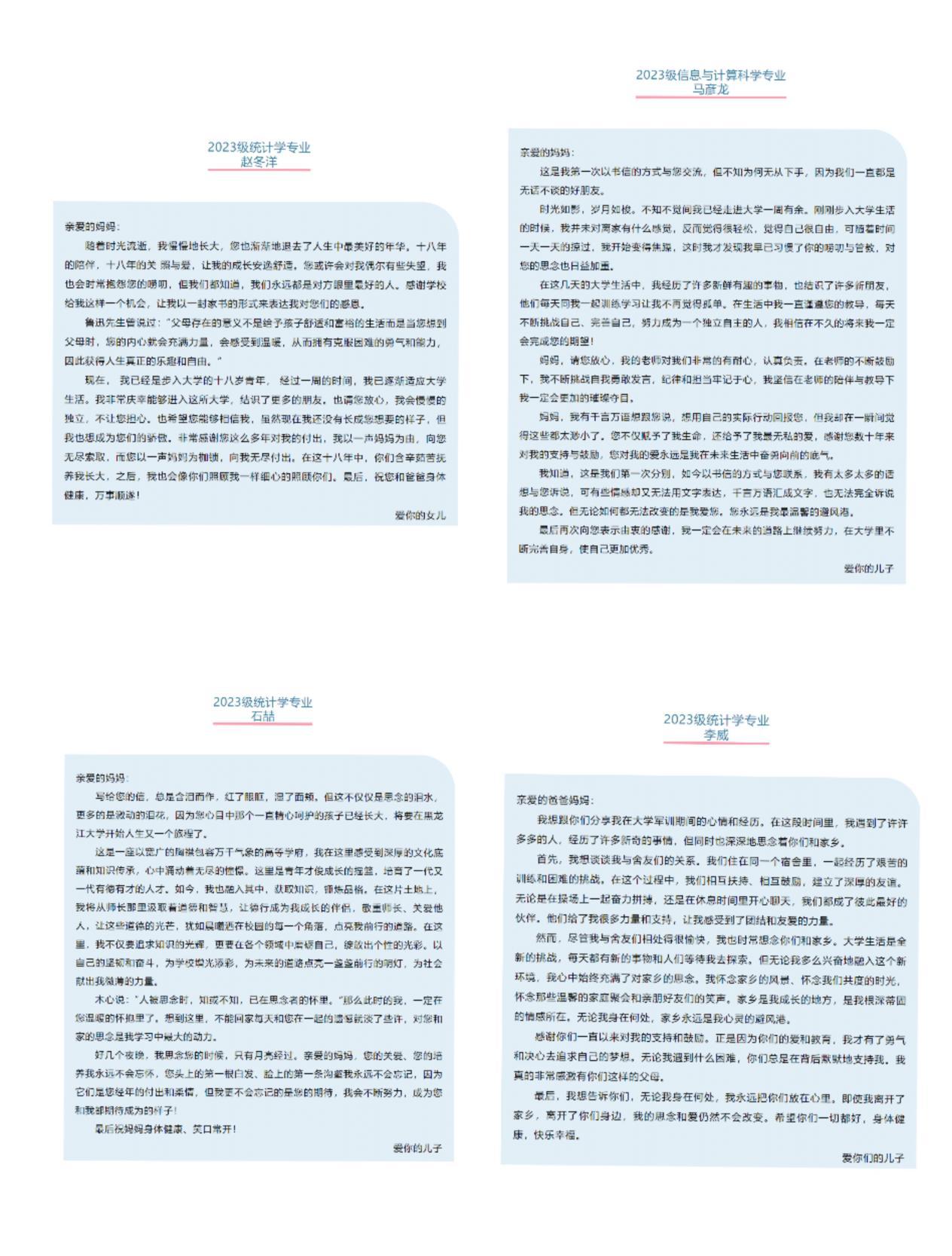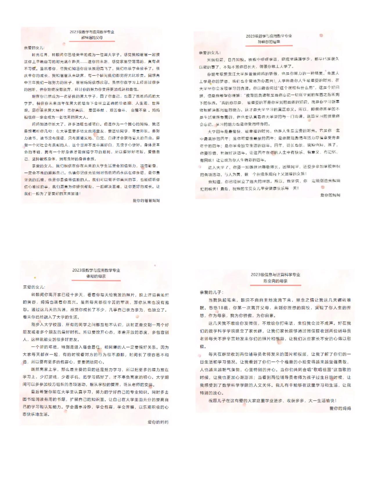 孩子,在黑大的生活还好吗?是否你还沉浸在终于摆脱了父母的碎碎念的“喜悦”中?是否你还沉浸在军训的辛苦和忙碌的步调里?或许我们在适应大学生活的同时,稍稍忽略了在家乡的父母是如何的惦念着我们。纸短情长,一封家书饱含着母亲温暖的叮咛,诠释着父亲深沉的爱。