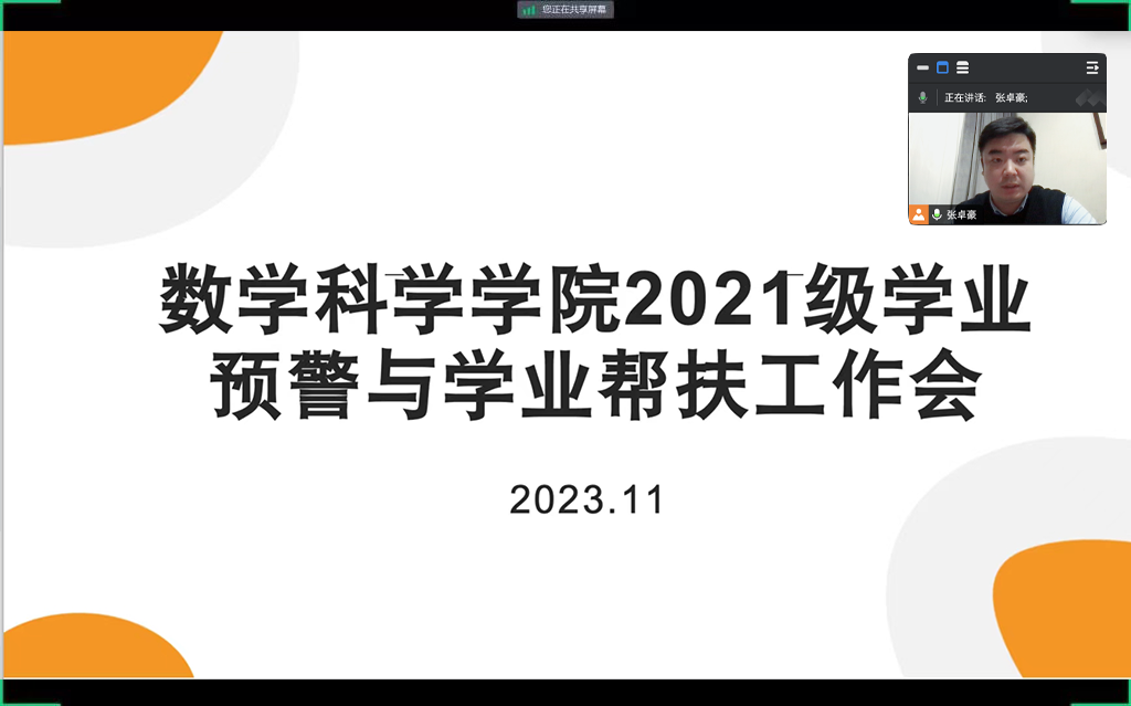 11月20日晚,yl23411集团于A8办公楼723会议室召开2023年秋季学期学业预警座谈会,会议由2020、2022级辅导员徐远航主持。会上张龙以学生的个人生涯发展为出发点,以案为例,通过优秀学子成长成才的典型案例引导学生端正学习态度,做好生涯规划,实现人生价值。他强调数学是一门抽象的学科,认真的学习态度是顺利完成学业的重要保障。他对全体同学提出三点期望:一是要提高思想认识,端正学习态度;二是要改进学习方法,跟紧课堂节奏;三是要坚定信心,珍惜当下,勇于实践锻炼,实现青春价值。