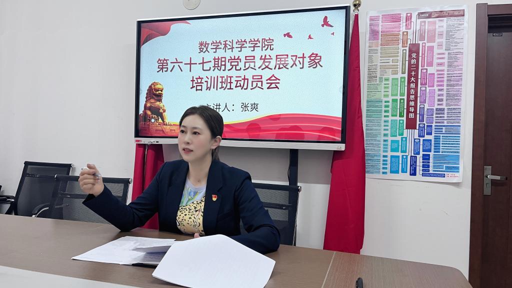 为深入开展学习贯彻习近平新时代中国特色社会主义思想主题教育,根据校党委组织部《关于举办永利官网第六十七期党员发展对象培训班暨学习贯彻习近平新时代中国特色社会主义思想主题教育专题培训班的通知》要求,yl23411集团于5月26日17:00在A8-333召开第六十七期党员发展对象培训班暨学习贯彻习近平新时代中国特色社会主义思想主题教育专题培训班开班动员会。数学科学学院党委组织员张爽主持本次会议,学院第六十七期党员发展对象全体成员参加会议。