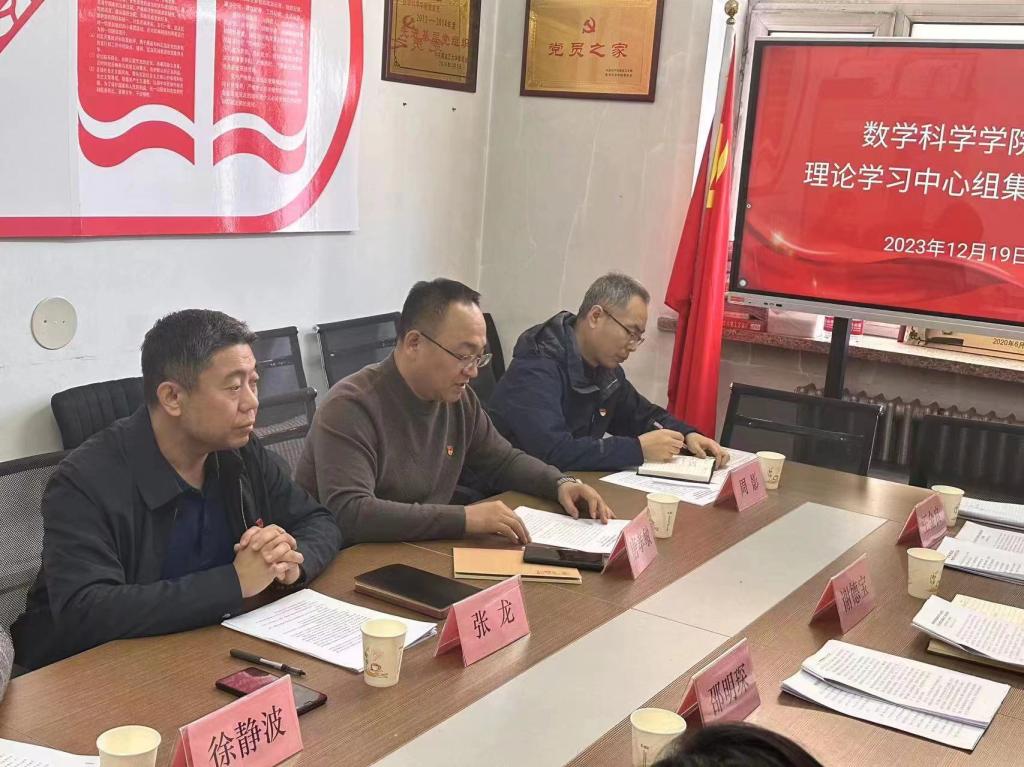 为深入学习习近平总书记视察黑龙江期间重要讲话重要指示精神,落实好“第一议题”制度和党委理论学习中心组学习制度,数学科学学院于12月19日上午在数学楼A8-333会议室“党员之家”,召开党委理论学习中心组集体学习研讨会,专题学习研讨习近平总书记视察黑龙江期间重要讲话重要指示精神。校党委宣传部副部长谢德宝、数据科学与技术学院团委书记邵明琛列席旁听,会议由yl23411集团党委书记张龙主持。